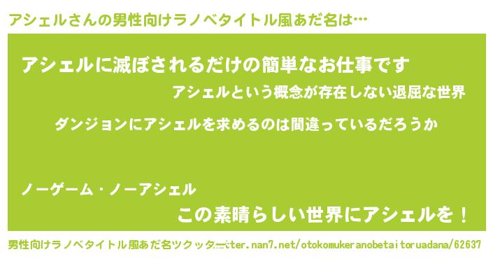 | 女子向けラノベタイトル風あだ名 | 『アシェルは平凡を望む』 |
