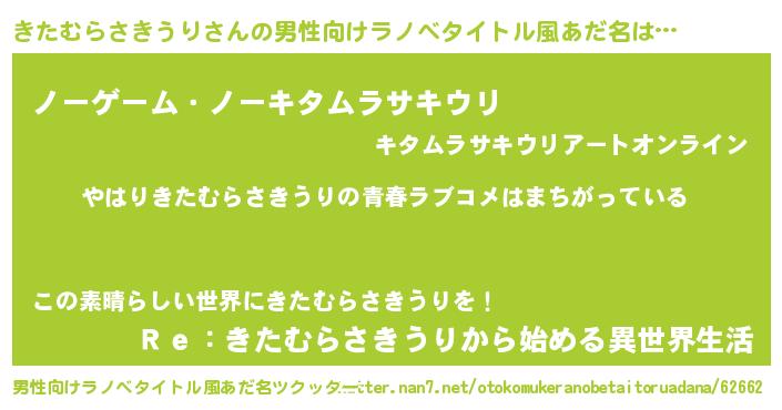 | 女子向けラノベタイトル風あだ名 | 『きたむらさきうりの雑貨屋さん』 |