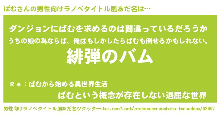 | 女子向けラノベタイトル風あだ名 | 『シンデレラばむ家の靴箱館』『闇のばむ』 |