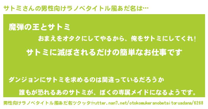 | 胡散臭い通販商品みたいなあだ名 | 『あなたにだけ特別に提供する100年もののヴィンテージワイン…その名も「サトミ」』 |