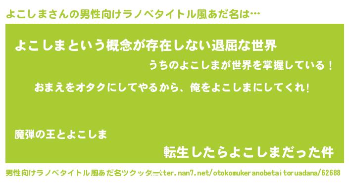 | ヒーロー風カッコイイあだ名 | 『正義の使者よこしま』『ネオヨコシマ』 |