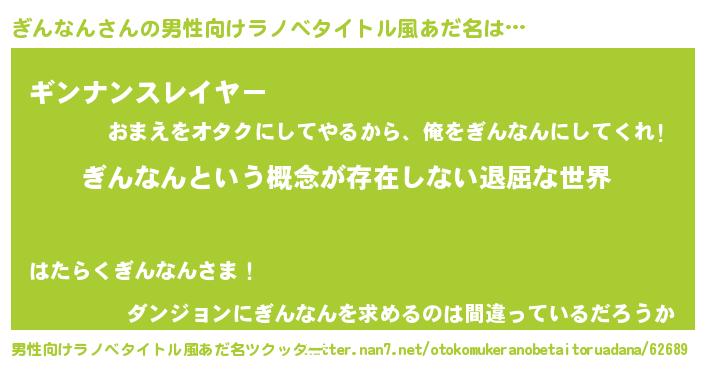 | 女子向けラノベタイトル風あだ名 | 『ぎんなんの契約王妃』 |