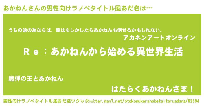 | 意味不明あだ名 | 『自称あかねん』『あかねんフォーエバー』 |