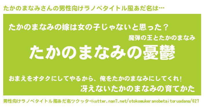 | 女子向けラノベタイトル風あだ名 | 『(仮)たかのまなみのやんごとなき事情』 |