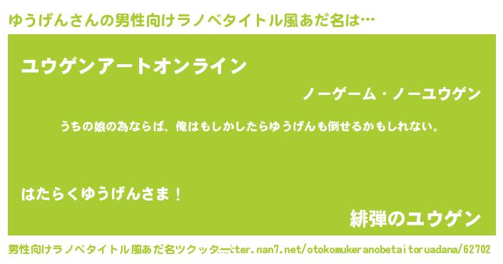 | ヒーロー風カッコイイあだ名 | 『ウルトラゆうげんマン』『仮面ユウダー』 |