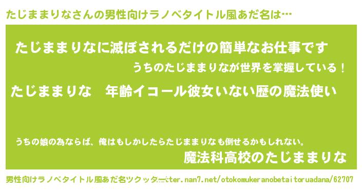 | 女子向けラノベタイトル風あだ名 | 『たじままりなの玉の輿計画!』 |