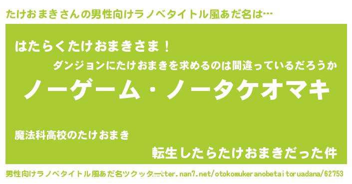 | 肩書あだ名 | 『たけおまき助教授』『たけおまき中将』 |