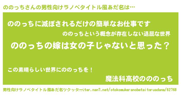 | ヘコむあだ名 | 『のの太郎』『ののっち(小並感)』 |