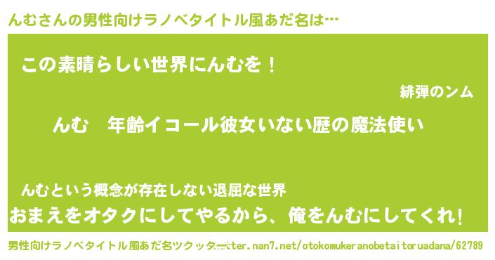 | 胡散臭い通販商品みたいなあだ名 | 『あなたにだけ特別に提供する100年もののヴィンテージワイン…その名も「んむ」』 |
