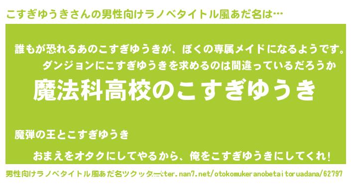 | 女子向けラノベタイトル風あだ名 | 『こすぎゆうきなんてお断りですっ。』 |