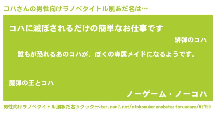 | ヒーロー風カッコイイあだ名 | 『ネオコハ』『慈愛の使者コハ』 |