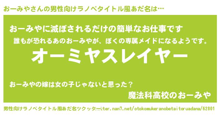 | 女子向けラノベタイトル風あだ名 | 『婚約破棄系悪役おーみやに転生したので、保身に走りました。』 |