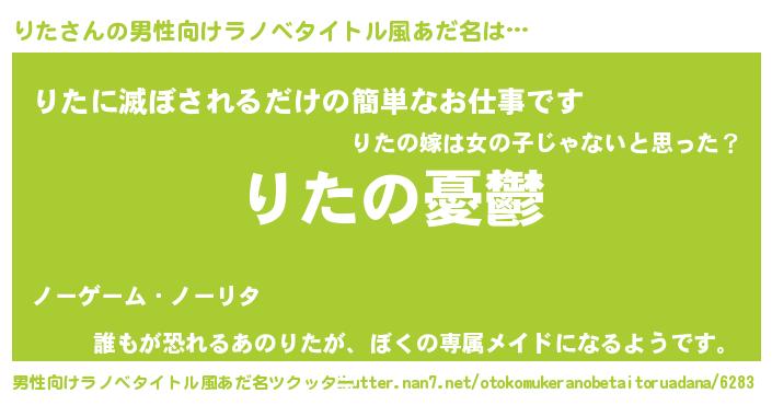 | 女子向けラノベタイトル風あだ名 | 『(仮)りたのやんごとなき事情』 |