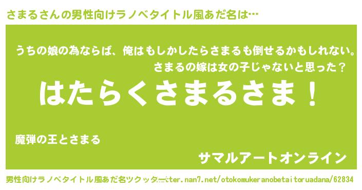| ヘコむあだ名 | 『豆乳』『さまっふぃ~』『さまっぺ』 |