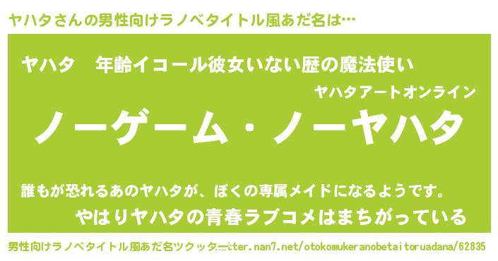 | 女子向けラノベタイトル風あだ名 | 『死神ヤハタの再婚』『ヤハタの契約王妃』 |