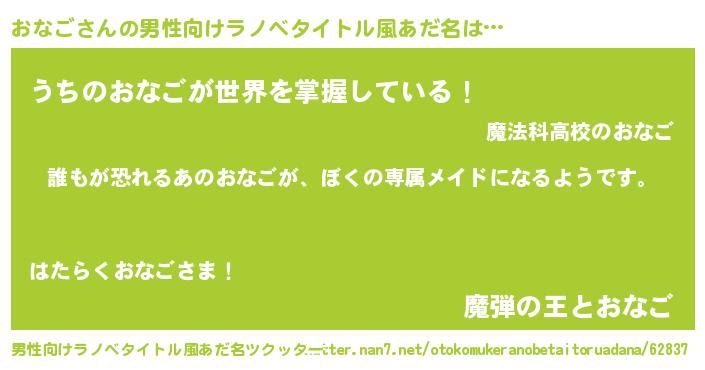 | ヒーロー風カッコイイあだ名 | 『ネオオナゴ』『仮面オナダー』 |