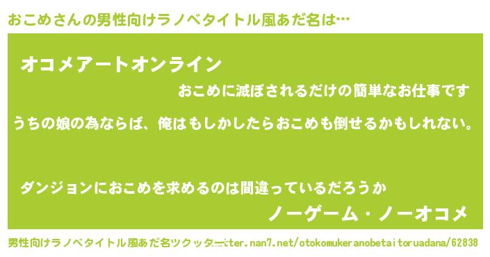 | 女子向けラノベタイトル風あだ名 | 『おこめの婚約者』『おこめ恋絵巻』 |