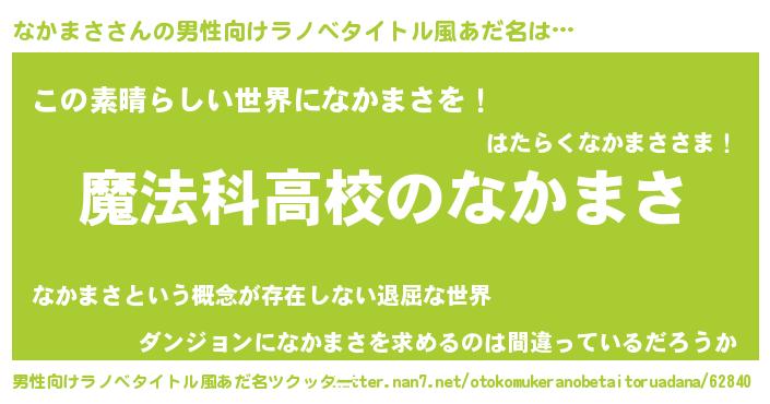 | 女子向けラノベタイトル風あだ名 | 『なかまさなんてお断りですっ。』 |