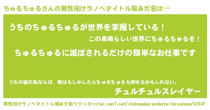 | 女子向けラノベタイトル風あだ名 | 『横柄ちゅるちゅると宰相陛下』 |