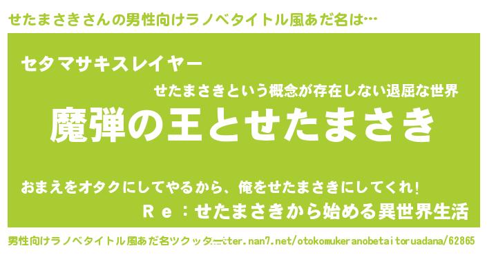 | 意味不明あだ名 | 『住所不定無職せたまさき(47歳)』 |