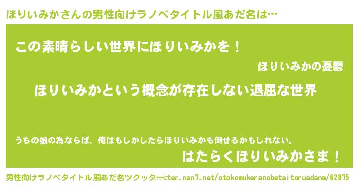 | 胡散臭い通販商品みたいなあだ名 | 『絶対に幸福をもたらす健康食品…その名も「ほりいみか」』 |