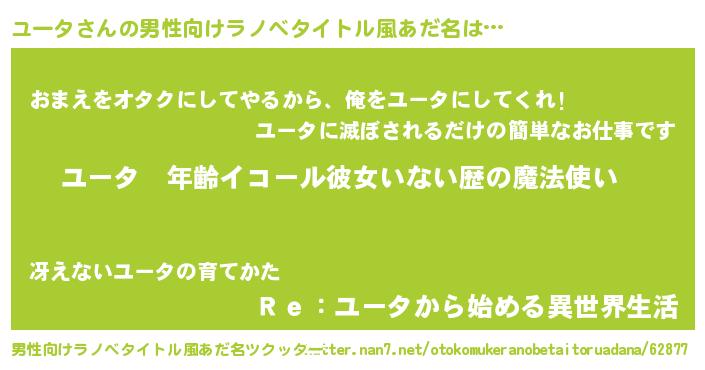 | 女子向けラノベタイトル風あだ名 | 『ユータの玉の輿計画!』『ユータ恋絵巻』 |