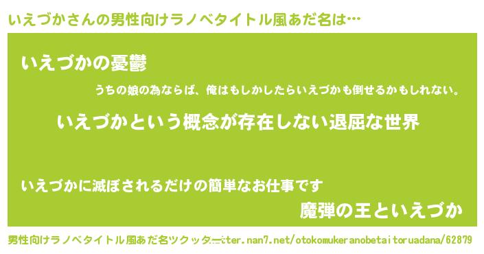 | 胡散臭い通販商品みたいなあだ名 | 『絶対に幸福をもたらす水素水…その名も「いえづか」』 |
