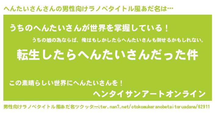 | ヒーロー風カッコイイあだ名 | 『スーパーヘンタイサン』『仮面ヘンダー』 |
