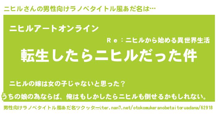 | ポケモン風あだ名 | 『ニヒキング』『ニヒチュウ』 |