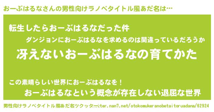 | 胡散臭い通販商品みたいなあだ名 | 『来世でも幸せになれる健康食品…その名も「おーぶはるな」』 |