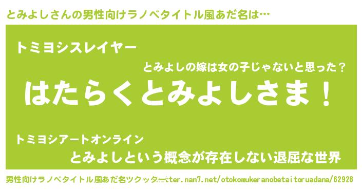 | 胡散臭い通販商品みたいなあだ名 | 『絶対に幸福をもたらす健康食品…その名も「とみよし」』 |