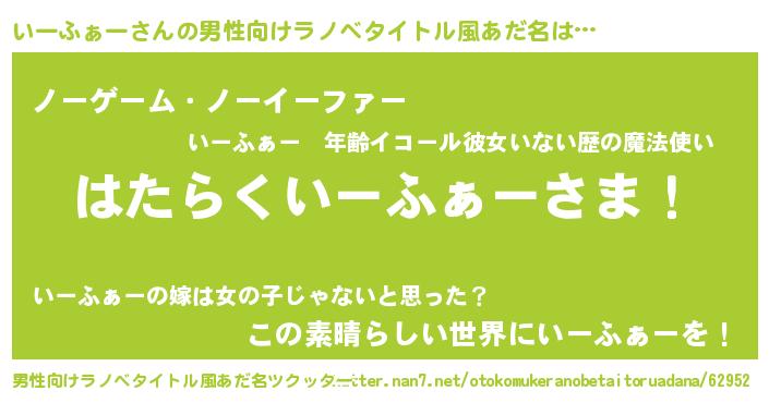 | ヒーロー風カッコイイあだ名 | 『正義の使者いーふぁー』『仮面イーダー』 |