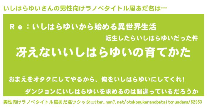 | 伝説のあだ名 | 『解き放たれた遊び人いしはらゆい』 |