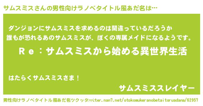 | 意味不明あだ名 | 『自称サムスミス』『永久保存サムスミス』 |