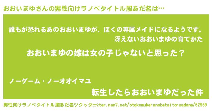 | 女子向けラノベタイトル風あだ名 | 『おおいまゆ様がみてる』 |