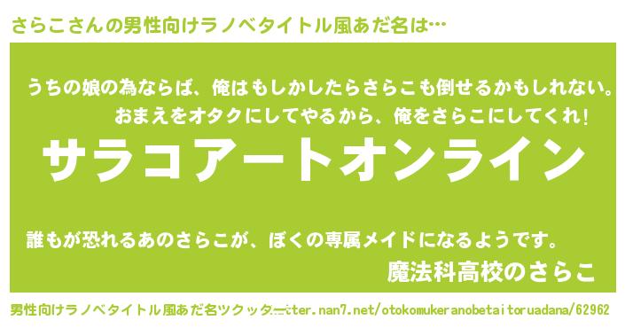 | 胡散臭い通販商品みたいなあだ名 | 『億万長者になれるブレスレット…その名も「さらこ」』 |