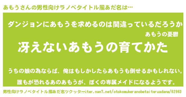 | 萌えアニメ | 主人公(あもう)のあだ名『 あも殿』 |