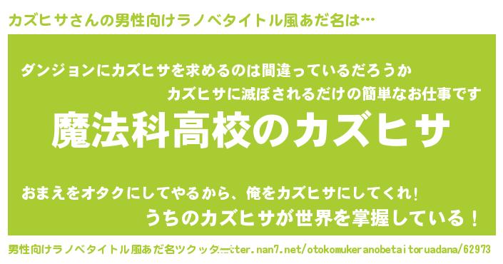 | 女子向けラノベタイトル風あだ名 | 『カズヒサなんてお断りですっ。』 |