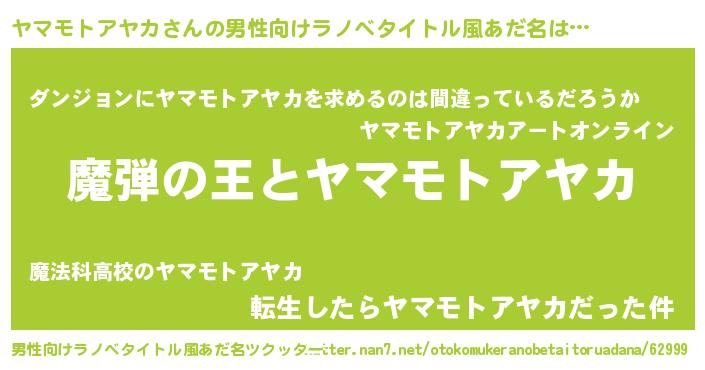 | ポケモン風あだ名 | 『ヤーマイ』『ヒヤマモトアヤカ』 |