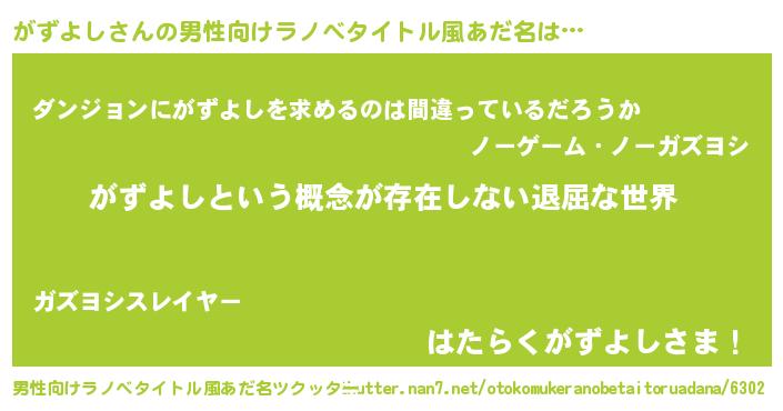 | 胡散臭い通販商品みたいなあだ名 | 『来世でも幸せになれる水素水…その名も「がずよし」』 |