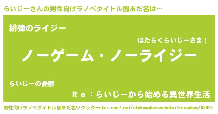 | ヒーロー風カッコイイあだ名 | 『慈愛の使者らいじー』『ネオライジー』 |