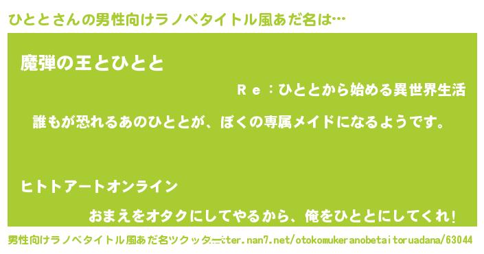 | ヘコむあだ名 | 『ひとと(遠い目)』『ひとにゅー』 |