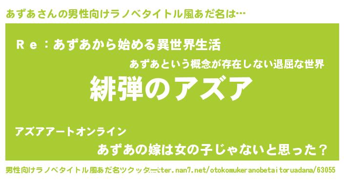 | 意味不明あだ名 | 『自称あずあ』『とにかく怪しいあずあ』 |