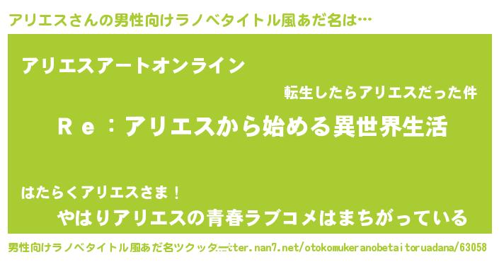 | 女子向けラノベタイトル風あだ名 | 『闇のアリエス』『アリエスの雑貨屋さん』 |