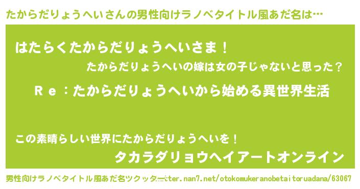 | 意味不明あだ名 | 『自称たからだりょうへい』 |