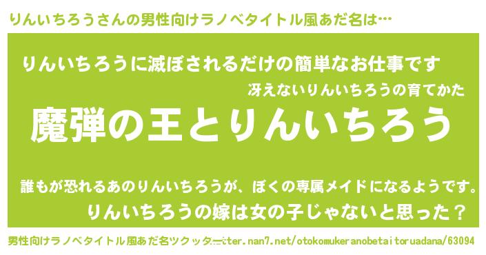 | 女子向けラノベタイトル風あだ名 | 『りんいちろうが死なない童話 林檎のりんいちろうの診療簿』 |