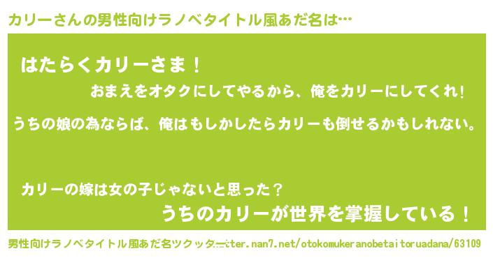 | 女子向けラノベタイトル風あだ名 | 『カリーの婚約者』 |