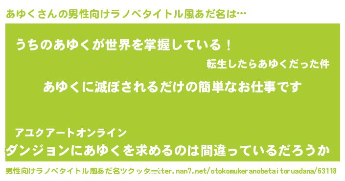 | ヒーロー風カッコイイあだ名 | 『幻影騎士アユ』『スーパーアユク』 |