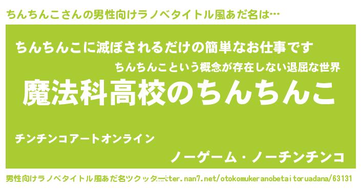 | 女子向けラノベタイトル風あだ名 | 『ちんちんこアンティーク』 |