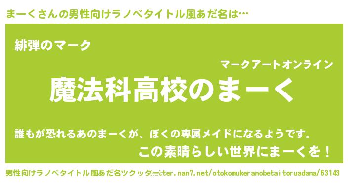 | 女子向けラノベタイトル風あだ名 | 『まーくなんてお断りですっ。』 |